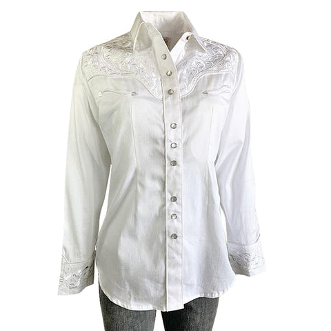 Rockmount Womens White/White 100% Cotton Vintage Tooling Embroidery L/S Shirt