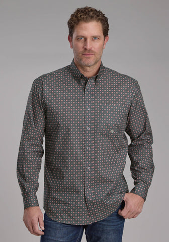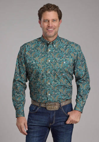 Roper Mens 2239 Cobalt Paisley Blue 100% Cotton Btn L/S Shirt