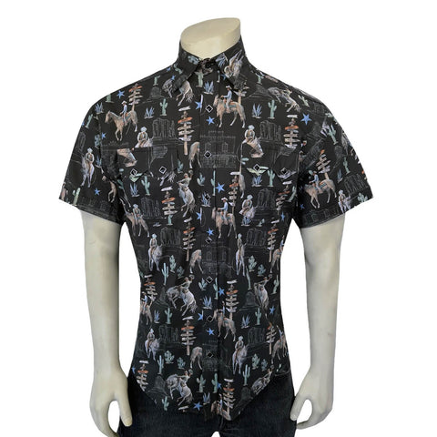 Rockmount Mens Cactus and Cowboys Black 100% Cotton S/S Shirt