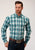 Roper Mens Teal 100% Cotton Ombre BD L/S Button Shirt