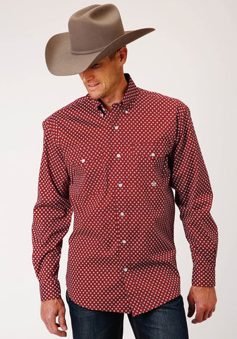 Roper Mens Wine Cotton Blend Diamond Poplin BD L/S Btn Shirt