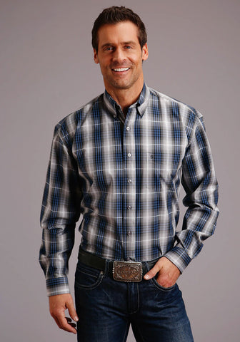 Stetson Mens Blue 100% Cotton Checked Ombre BD L/S 1 Pkt Shirt