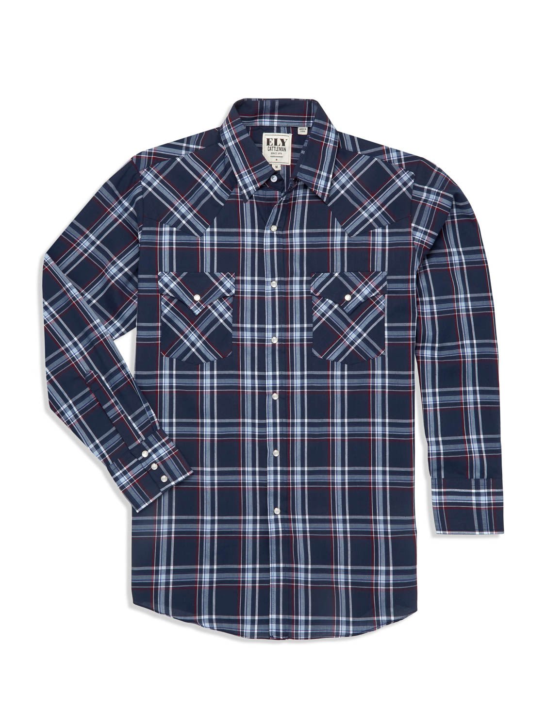 Ely and Walker Mens Plaid Western Snap Navy Poly/Cotton L/S Shirt