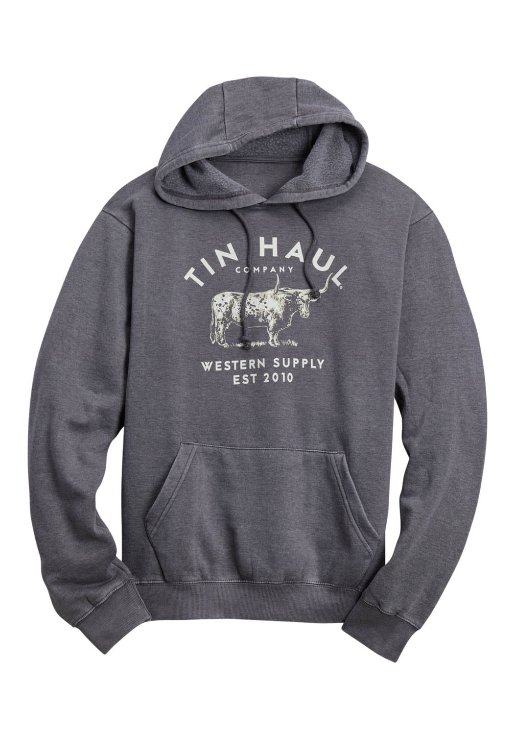 Tin Haul Mens Steer Western Supply Grey Cotton Blend Hoodie