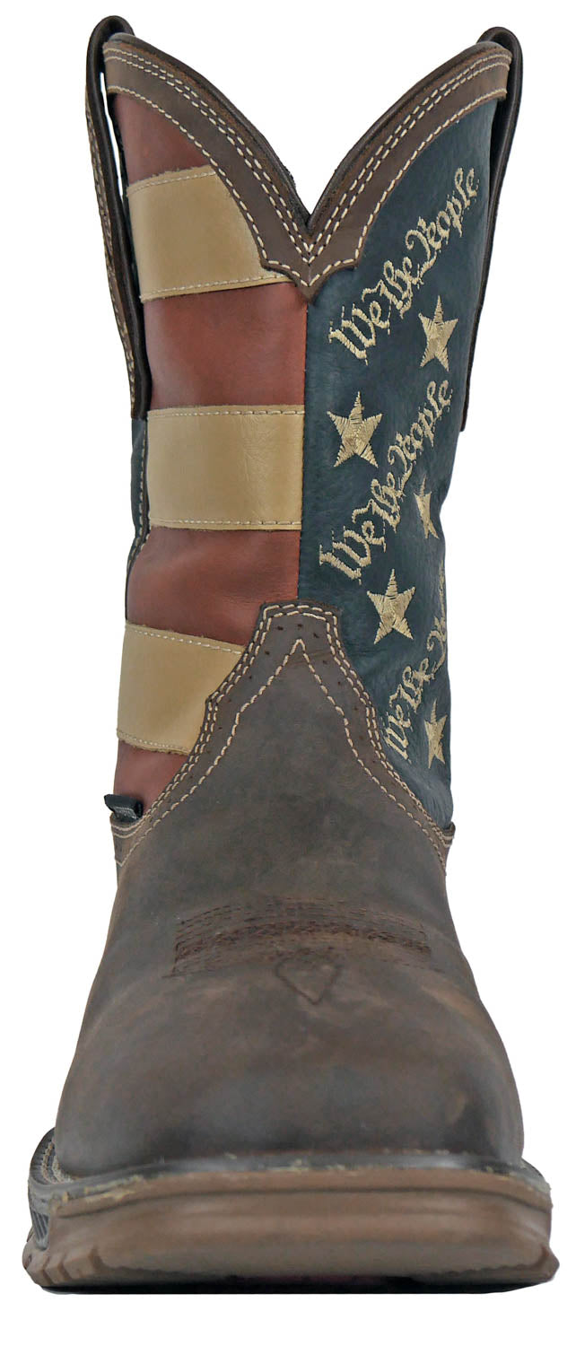 Hoss Boot Company was founded to provide more carefully crafted work footwear choices for hard-working men and women. This handcrafted premium leather boot features a classic square toe with a rugged Old Glory flag stitched into the shaft. Designed for the modern cowboy, this boot offers a blend of style, durability, and American pride, perfect for any occasion. Work hard and stay protected with these work boots.