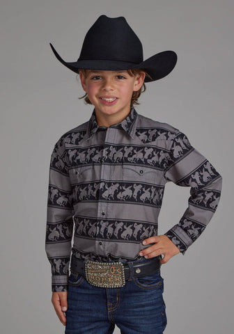 Roper Kids Boys Sunset Horse Border Black 100% Cotton L/S Shirt