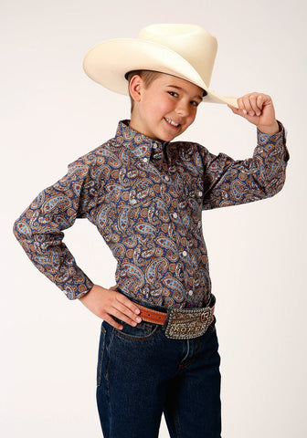 Roper Boys Kids Multi-Color 100% Cotton Cider Plaid L/S Shirt