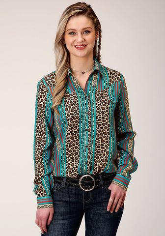 Stetson Womens Boyfriend Fit Stud Blue 100% Cotton L/S Shirt