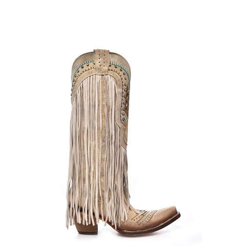 Corral Womens Crystals Pattern Embroidery Fringe Brown Cowhide 14in Cowboy Boots