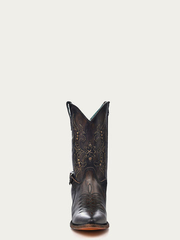 Corral Womens Pointed Toe Stud Strap Dark Honey Cowhide 10in Cowboy Boots