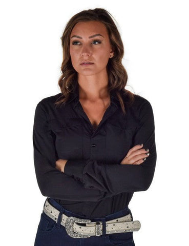Cowgirl Tuff Womens Breathe Pullover Black Nylon L/S Shirt