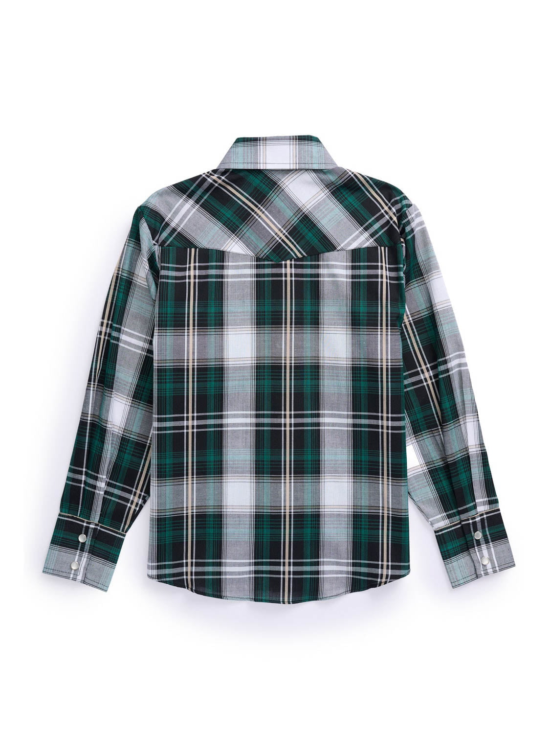 Ely and Walker Kids Boys Textured Plaid Western Green Poly/Cotton L/S Shirt