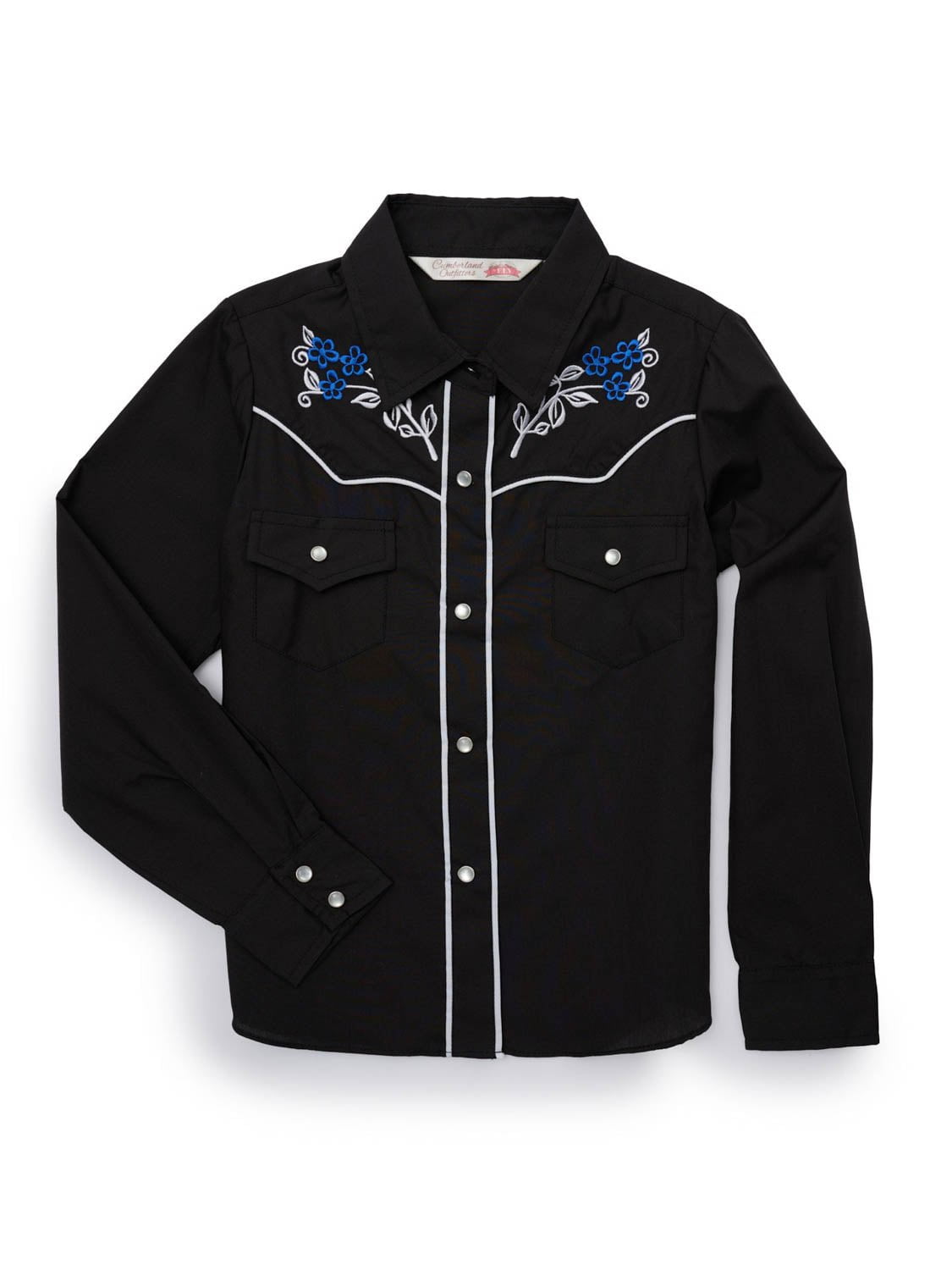 Ely and Walker Kids Girls Floral Embroidery Solid Black Poly/Cotton L/S Shirt