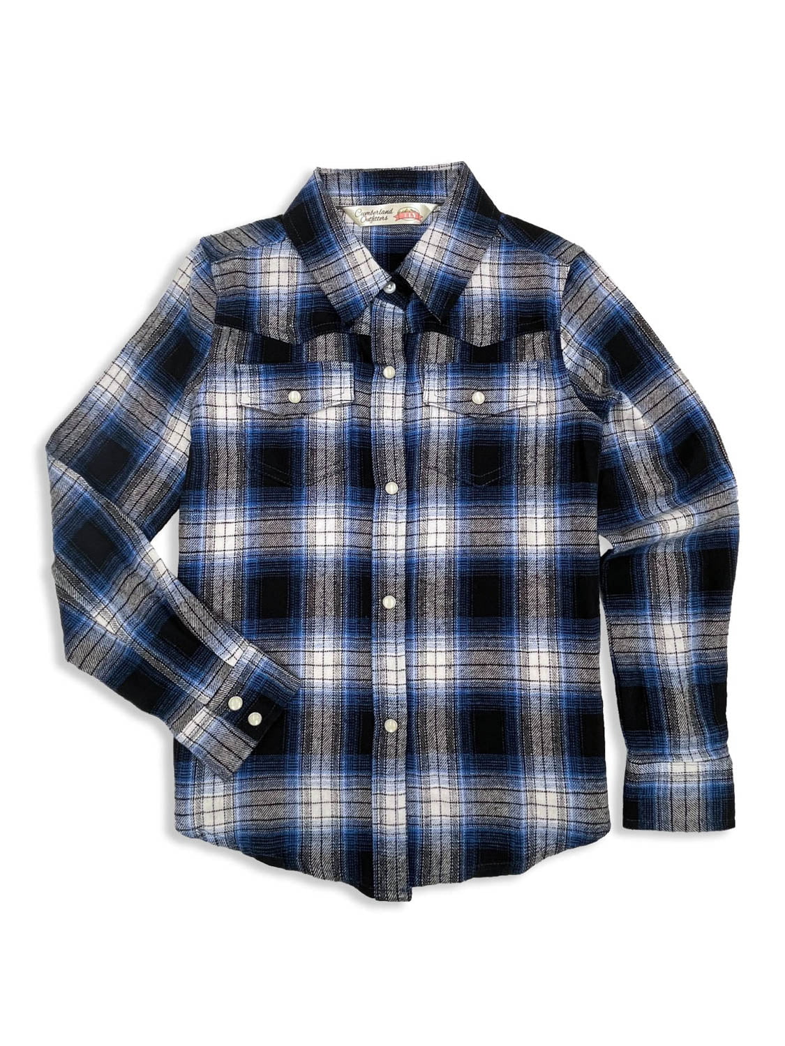 Ely and Walker Kids Girls Western Plaid Flannel Navy 100% Cotton L/S Shirt