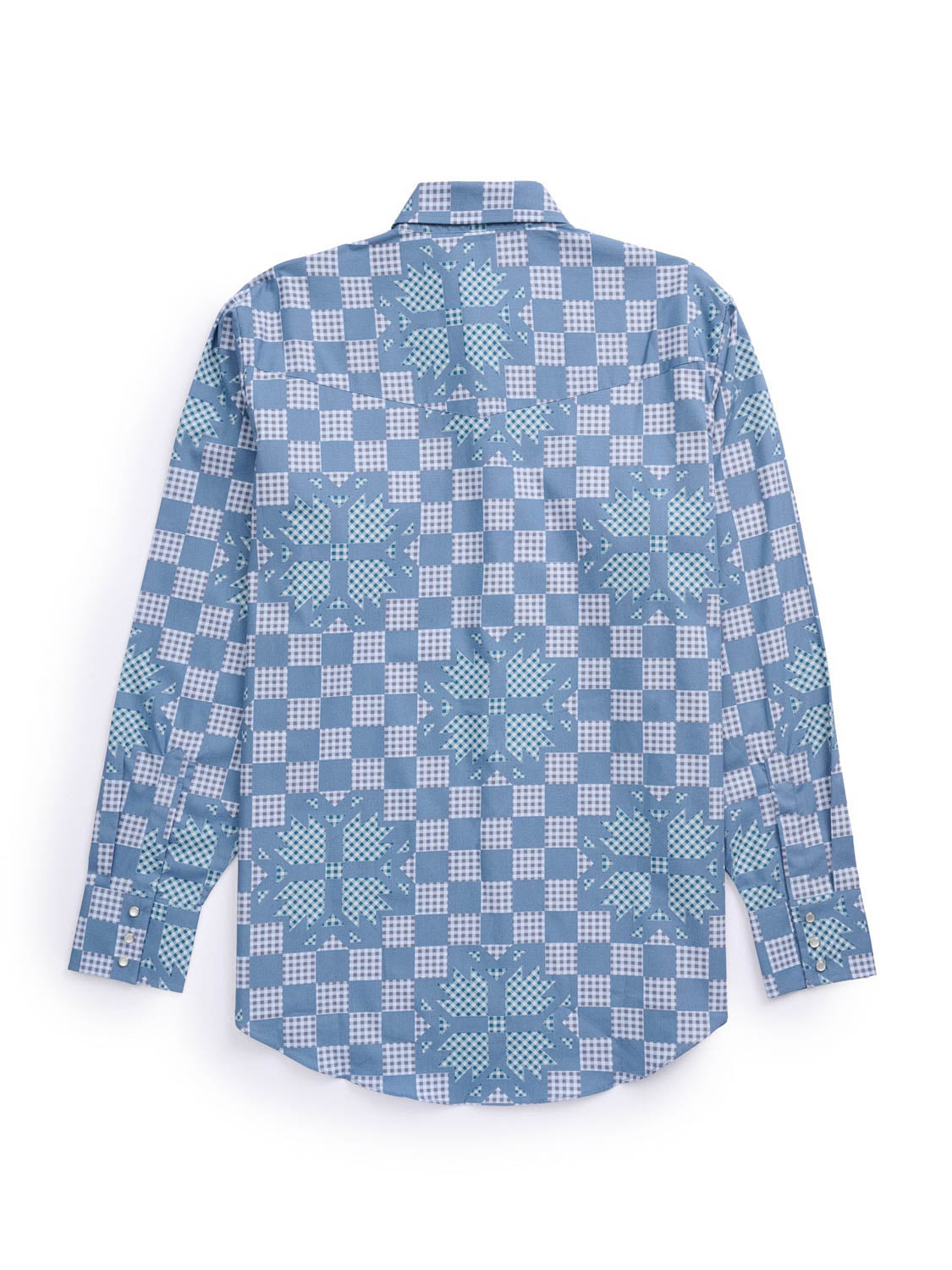 Ely and Walker Mens Checkered Patchwork Snap Denim Blue 100% Cotton L/S Shirt