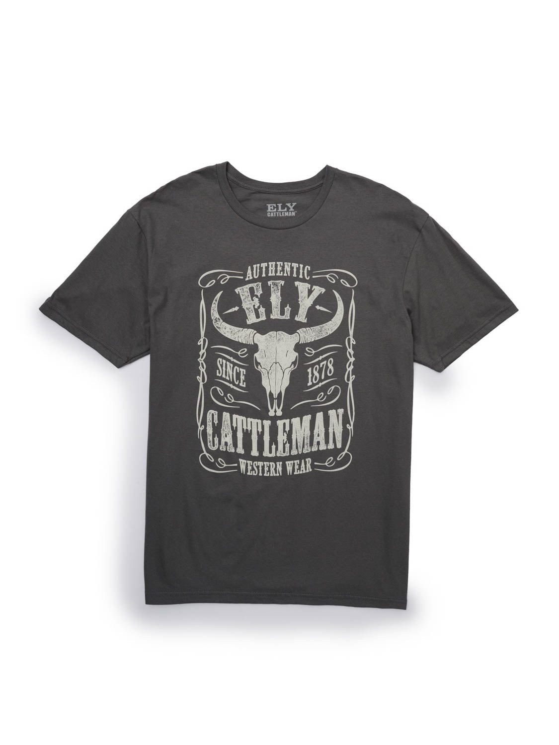 Ely and Walker Mens Cow Skull Black Cotton Blend S/S T-Shirt