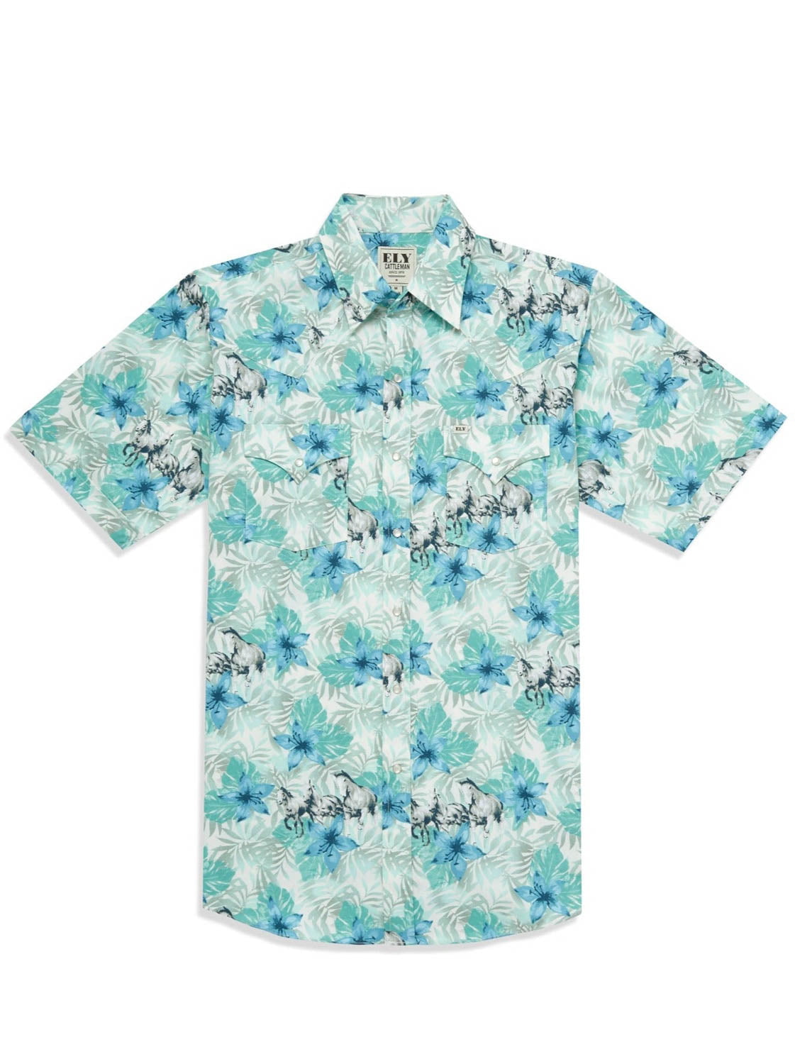 Ely and Walker Mens Hawaiian Horse Print Tan 100% Cotton S/S Shirt