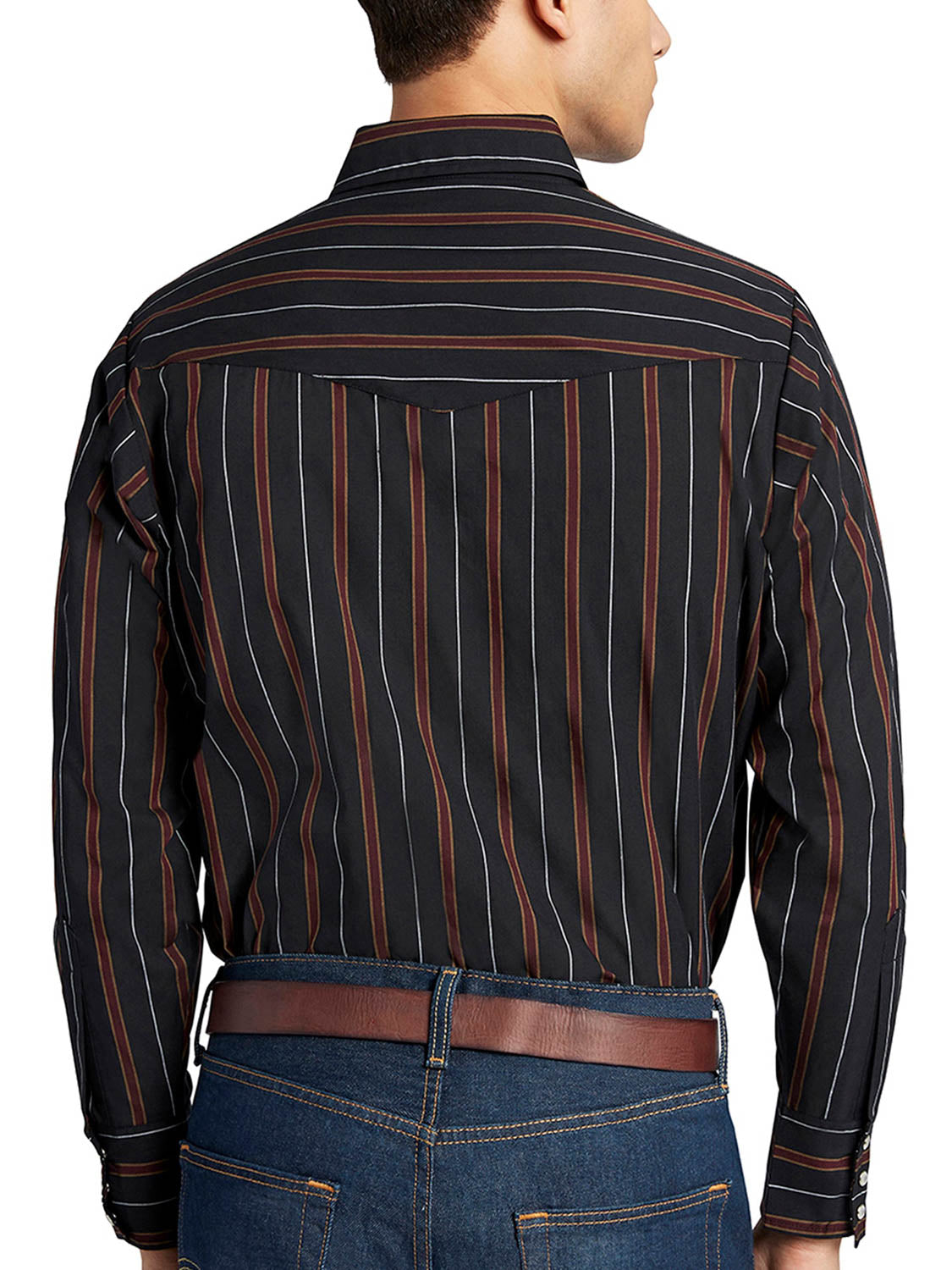 Ely and Walker Mens Stripe Western Snap Black Poly/Cotton L/S Shirt