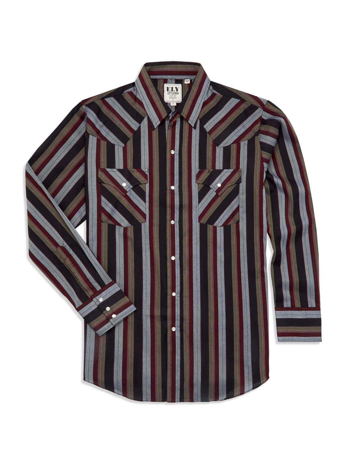 • 65% Polyester/35% Cotton material Wear this Ely Cattleman western snap shirt with your favorite jeans for a look that gets you out the door at a moment's notice! Layer up in this versatile long sleeve shirt.
