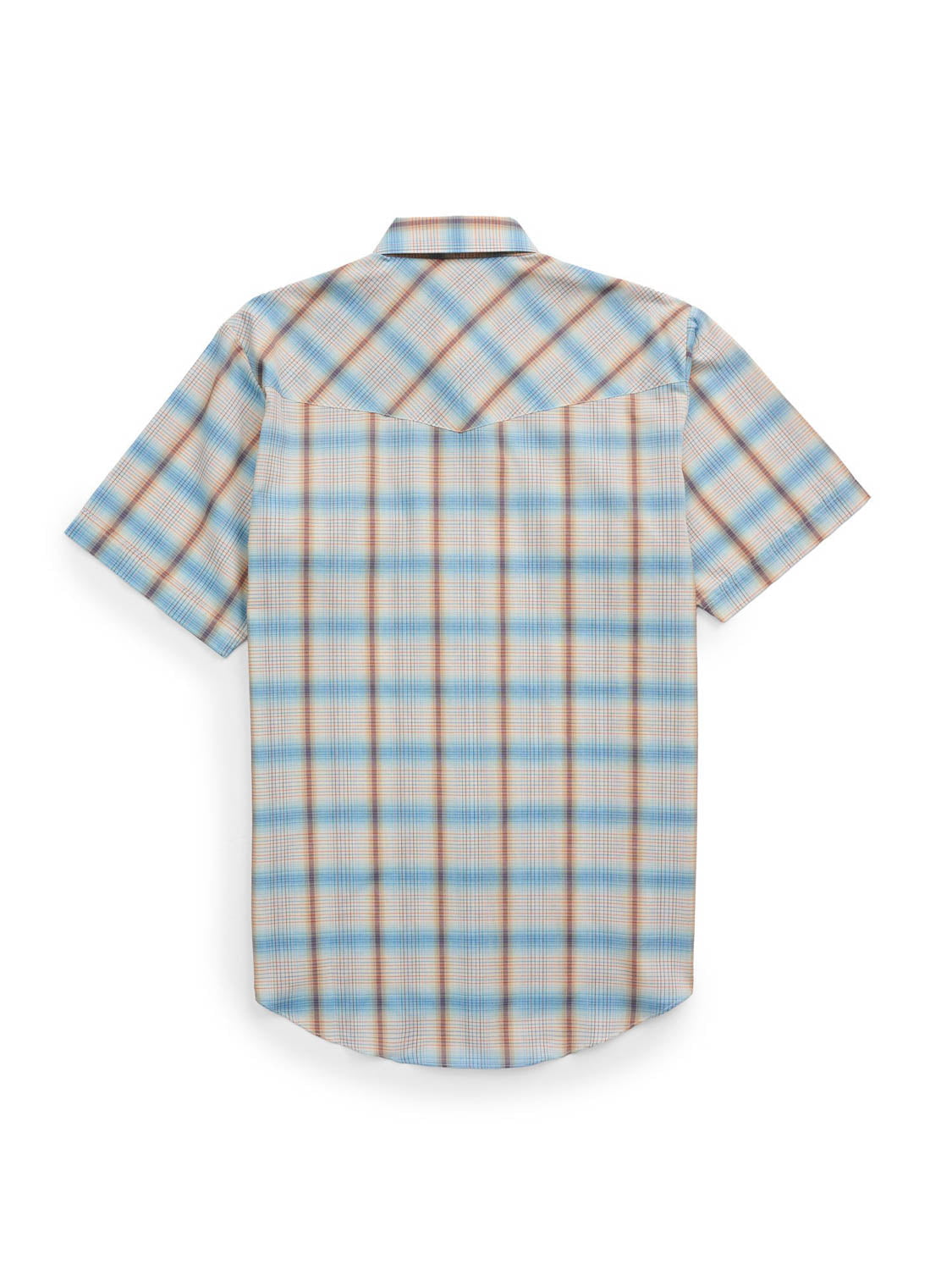 Ely and Walker Mens Western Plaid Snap Light Blue Poly/Cotton S/S Shirt