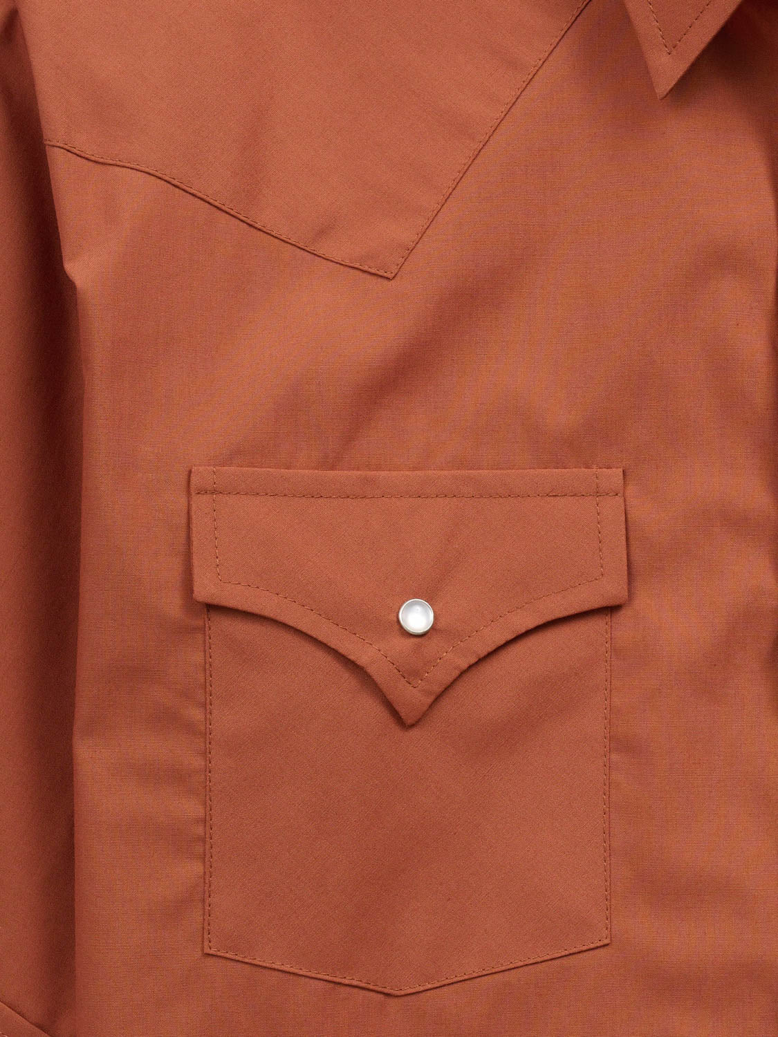 Ely and Walker Mens Western Solid Rust Poly/Cotton S/S Shirt