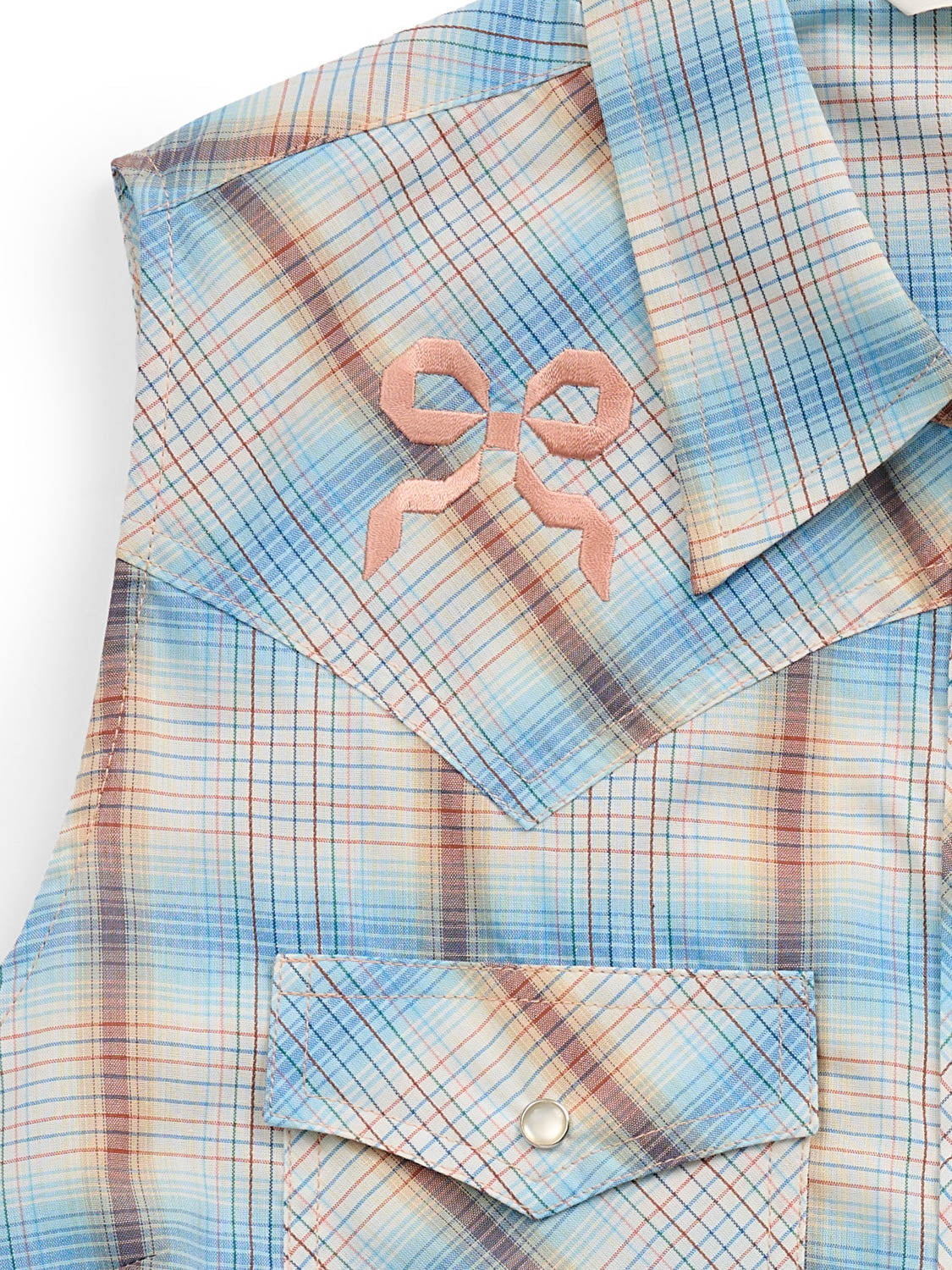 • 65% Polyester/35% Cotton material Be ready when warm weather arrives with this bow embroidery shirt! Layer up in this versatile sleeveless shirt.