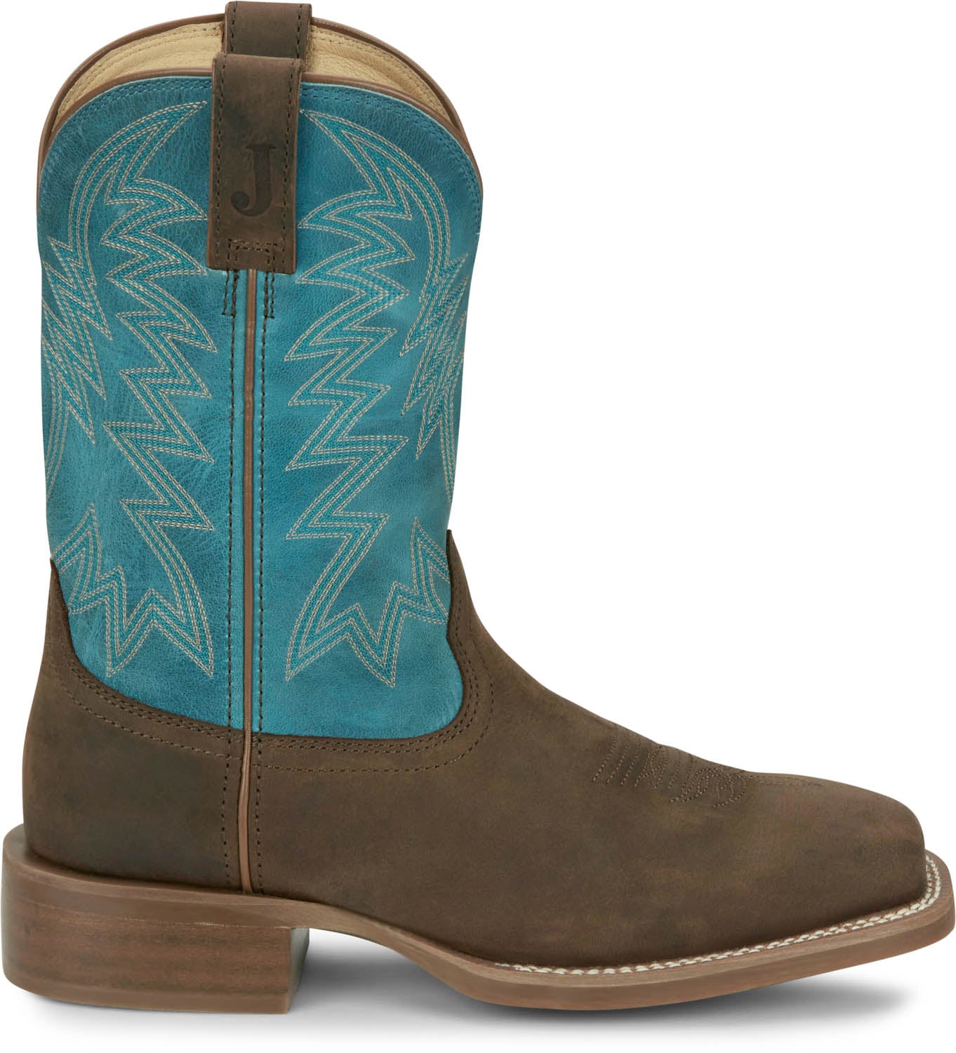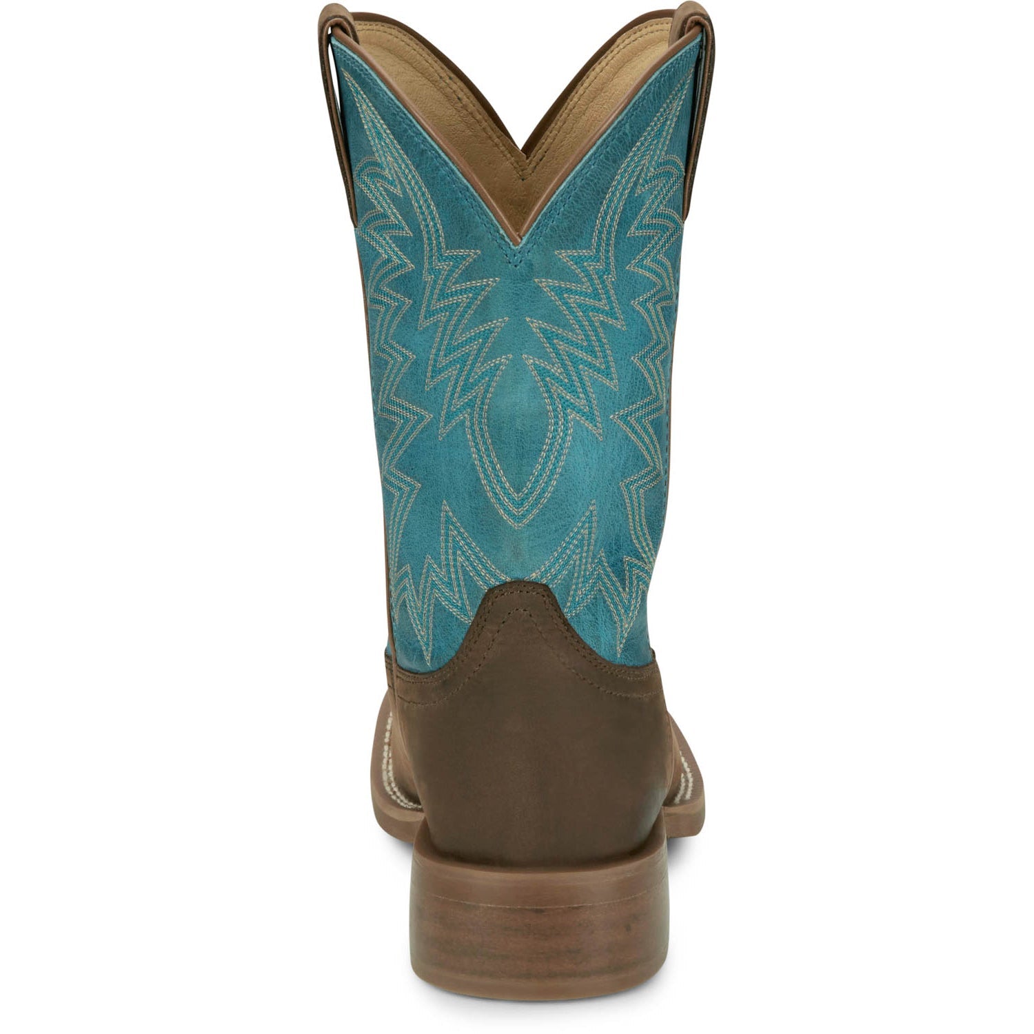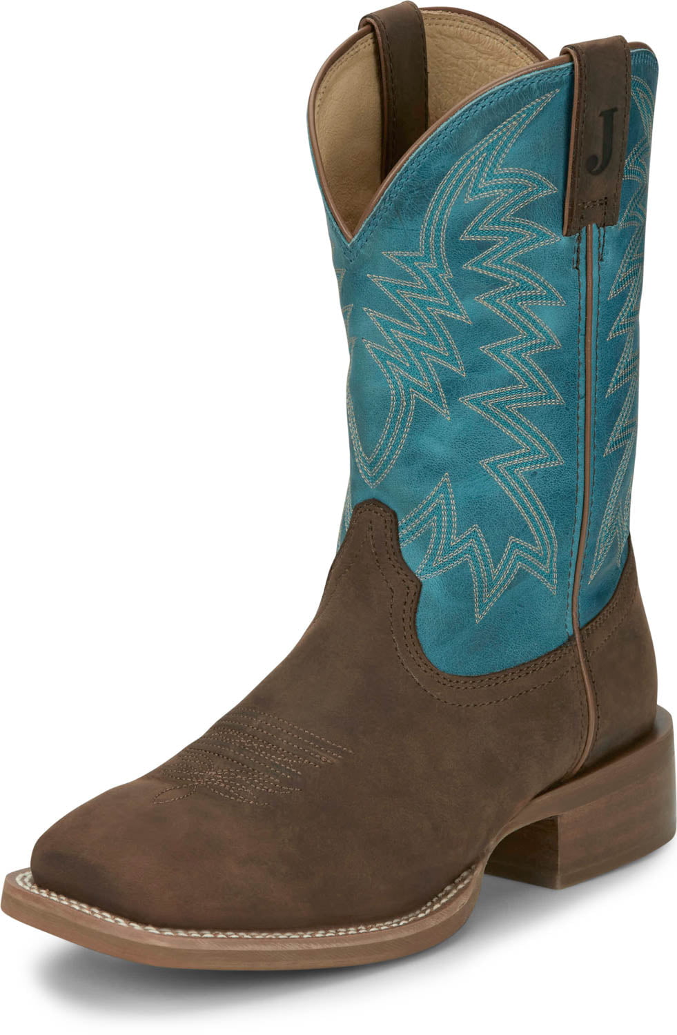 Justin Mens Big Bucks 11in Western Walnut/Blue Leather Frontier Cowboy Boots