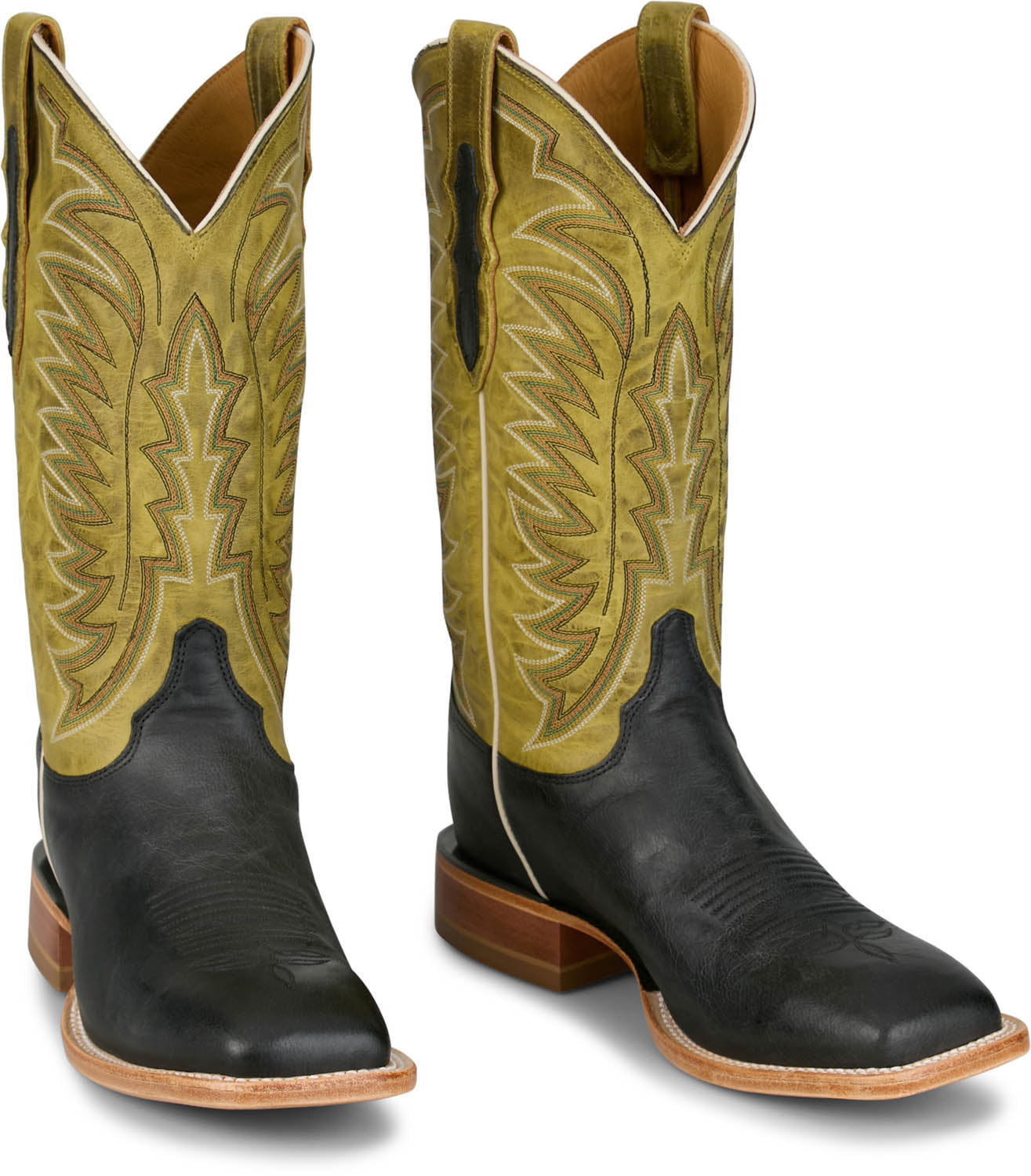 Justin Mens Burchett 13in Western Ebony Goat Leather CPX Cowboy Boots