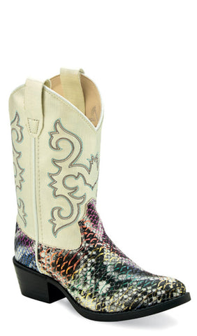 Old West Children Unisex J Toe Shiny Multicolor Faux Leather Cowboy Boots