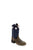 Old West Kids Unisex Broad Square Toe Brown/Midnight Blue Leather Cowboy Boots