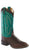 • Thunder Oiled Rust Foot, Vintage Turquoise Shaft These authentic western turquoise leather womens cowboy boots from Old West feature a broad square toe, 11" scallop shaft, and rubber outsole. Constructed from high quality leather and man-made materials, these boots are made to last. If you�re looking to add some western flare to your wardrobe, these sleek and stylish boots are a perfect choice.