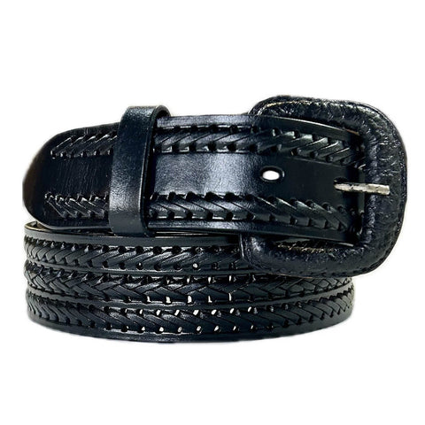 Rockmount Mens Laced and Tooled Western Black Leather Belt
