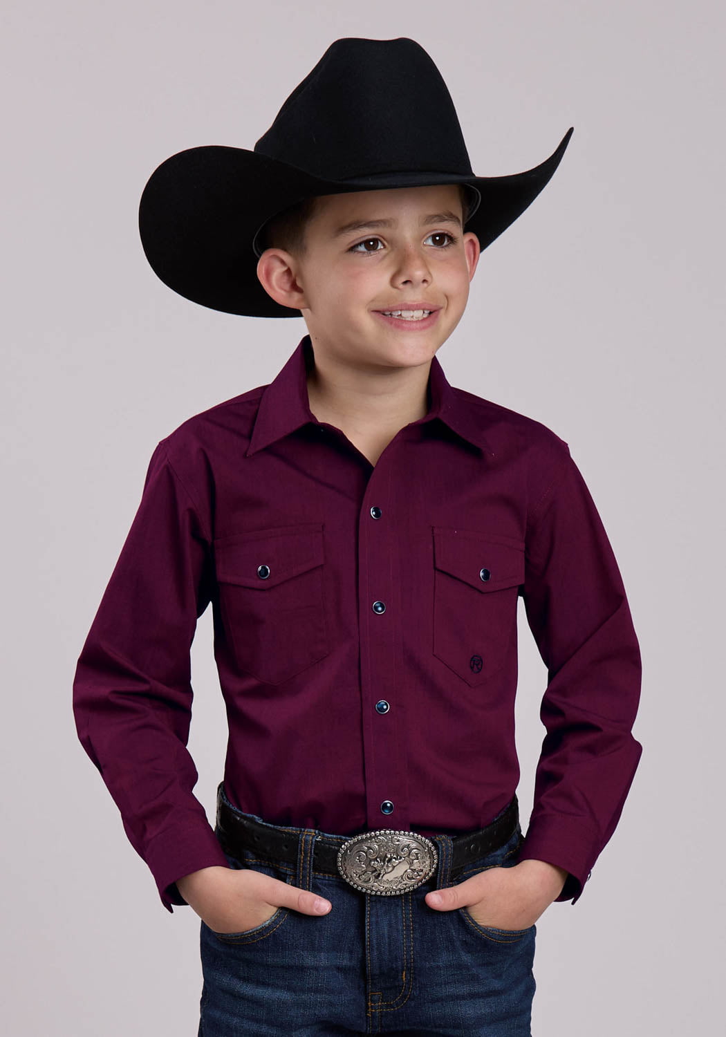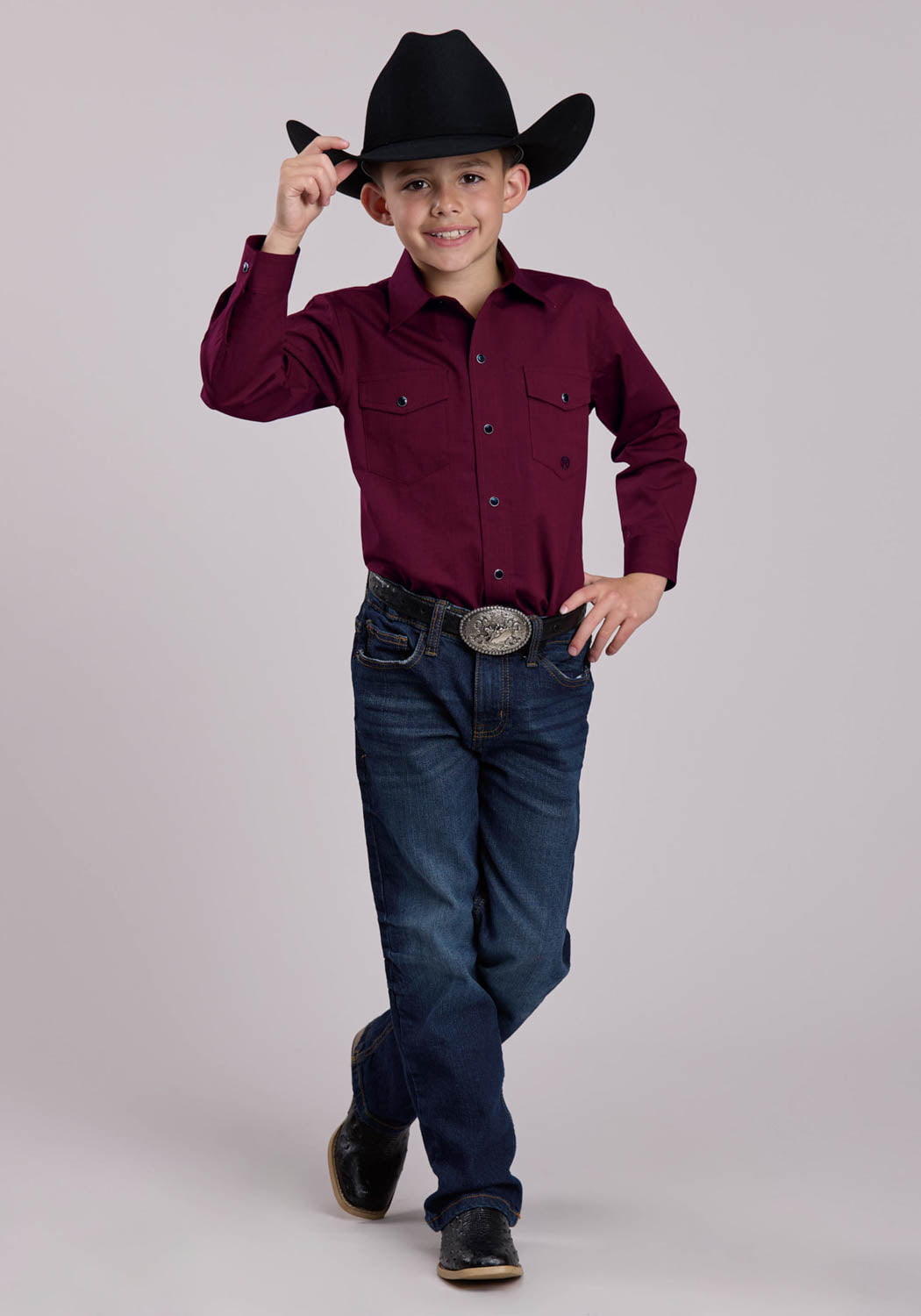 Roper Kids Boys 2751 Black Fill Wine 100% Cotton L/S Shirt