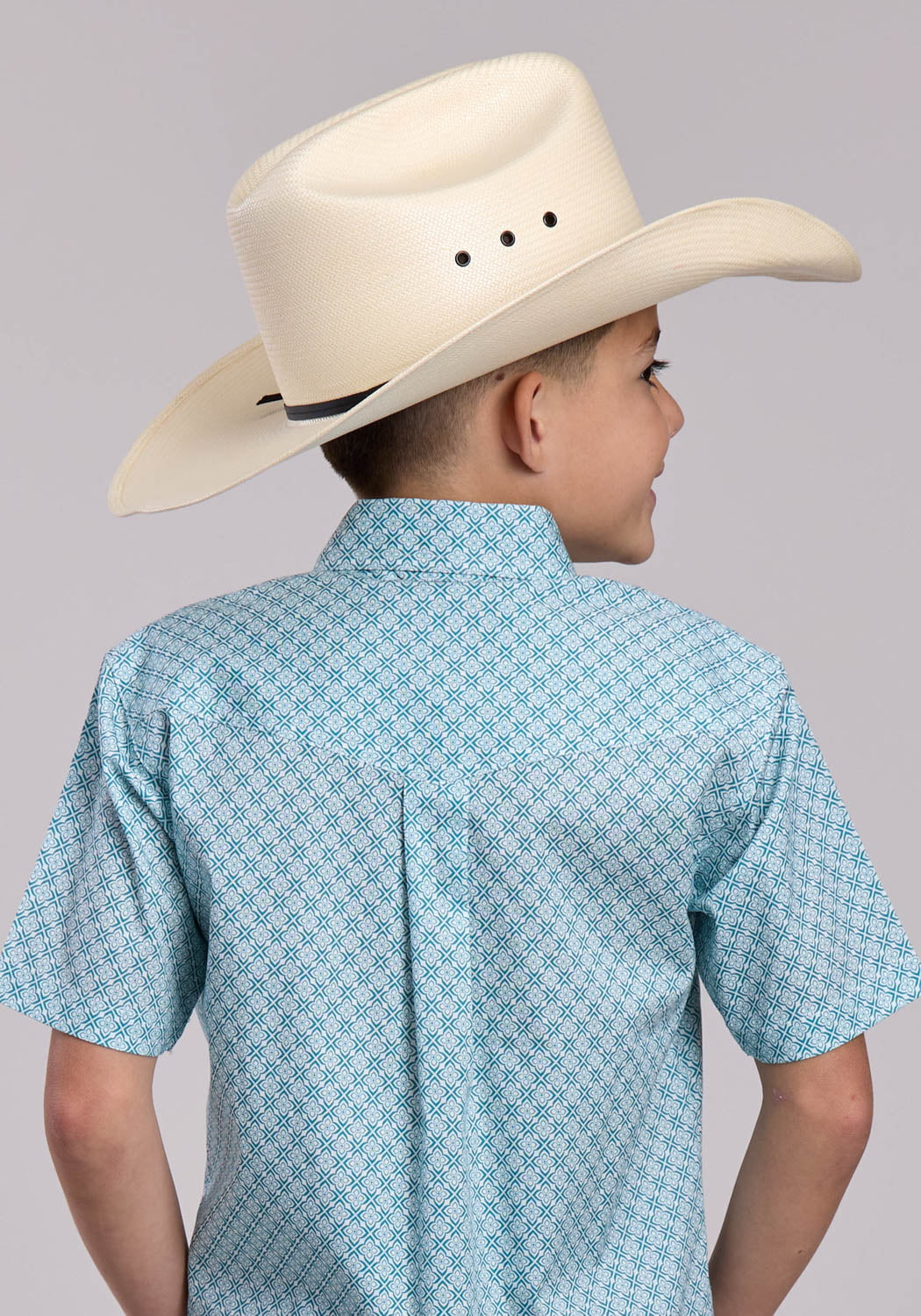 Roper Kids Boys Stretch Four Point Foulard Teal Cotton Blend Btn S/S Shirt