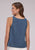 Roper Womens Belt Buckle Strap Denim Blue 100% Cotton S/L Tank Top