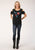 Roper Womens Black Poly/Rayon Cold Shoulder S/S Longhorn T-Shirt