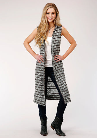 Roper Womens Black/White Cotton Blend Hooded S/L Cardigan
