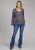 Roper Womens Gem Floral Keyhole Multi-Color 100% Cotton L/S Blouse