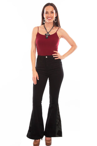Scully Womens Bell Bottom Black Cotton Blend Jeans