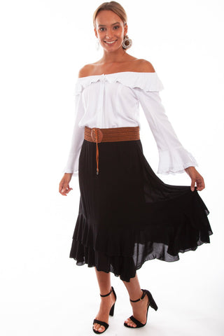Scully Womens Black 100% Rayon Maxi Ruffle Skirt