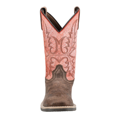 Smoky Mountain Boots Youth Unisex Rustic Rider Brown/Coral Leather Cowboy Boots