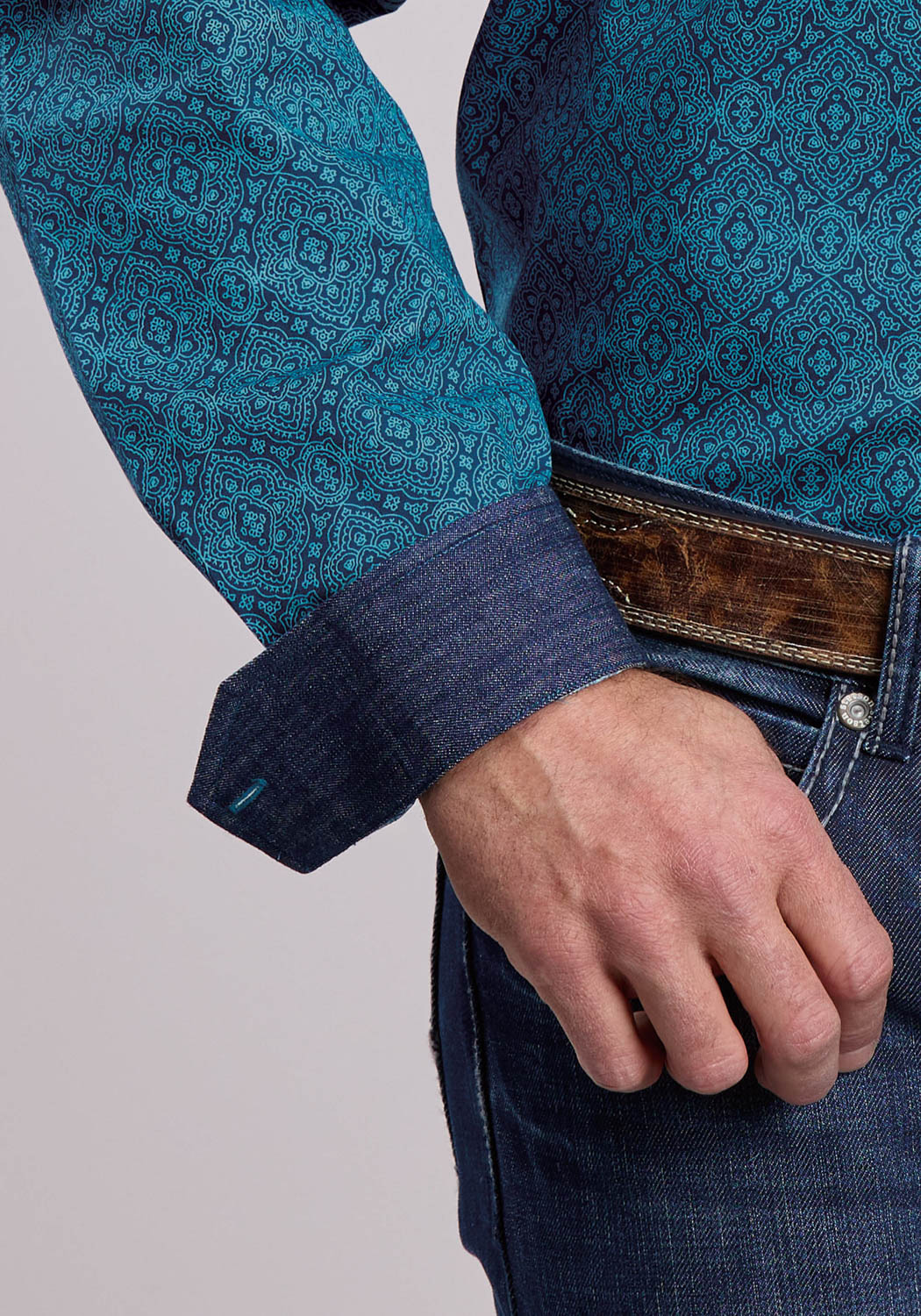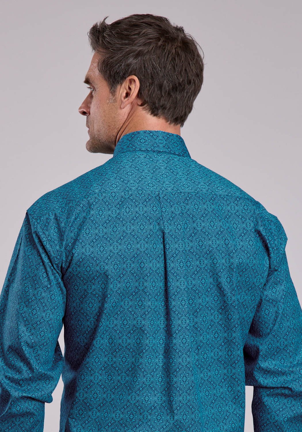 Stetson Mens 2734 Medallion Teal 100% Cotton 1 Pkt L/S Shirt