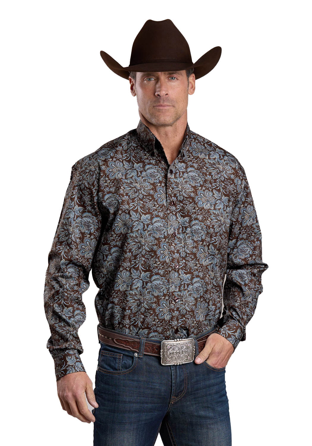 Stetson Mens Fall Paisley Brown 100% Cotton 1 Pkt L/S Shirt