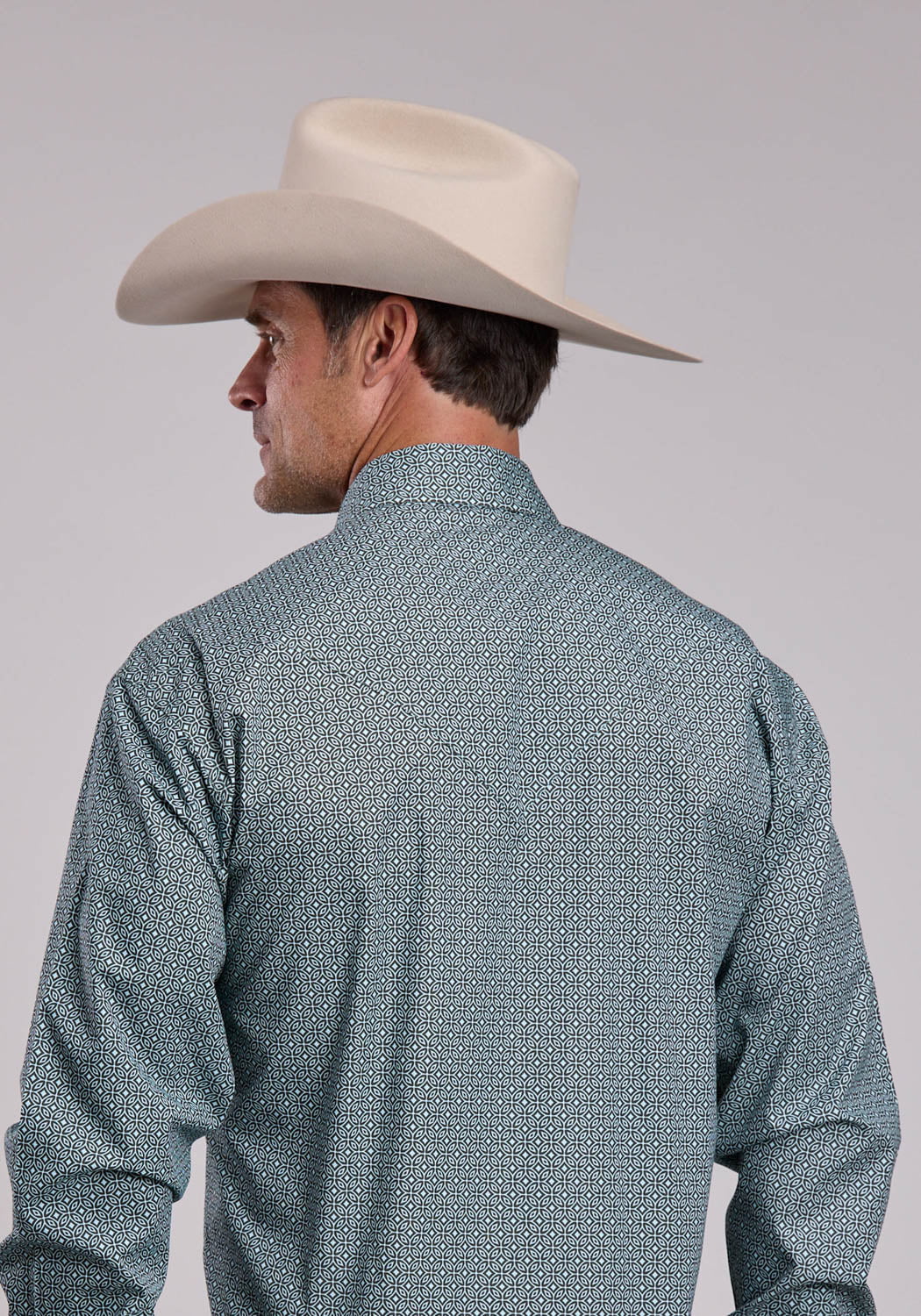 Stetson Mens Mosaic Print Forest 100% Cotton L/S Shirt