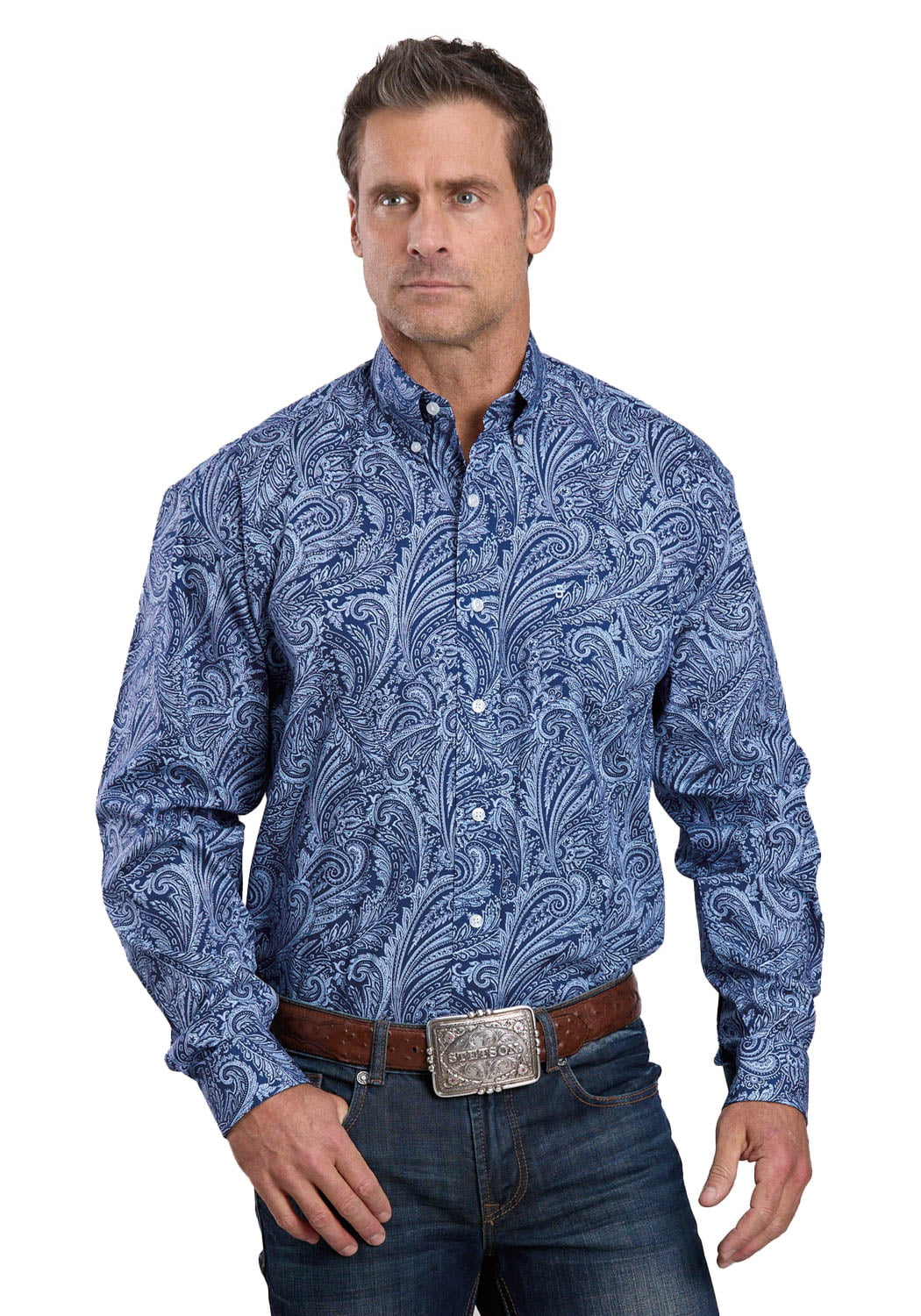 Stetson Mens Plume Paisley Indigo 100% Cotton 1 Pkt L/S Shirt
