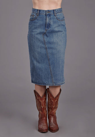 Stetson Womens Asymmetrical Seam Medium Wash 100% Cotton Skirt