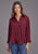 Stetson Womens Open V-Neck Wine 100% Polyester S/S Blouse