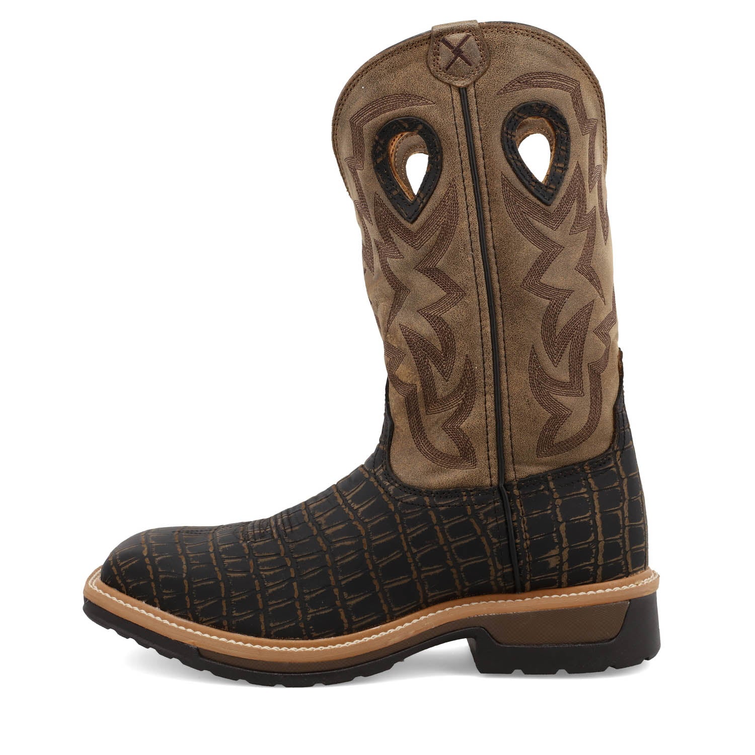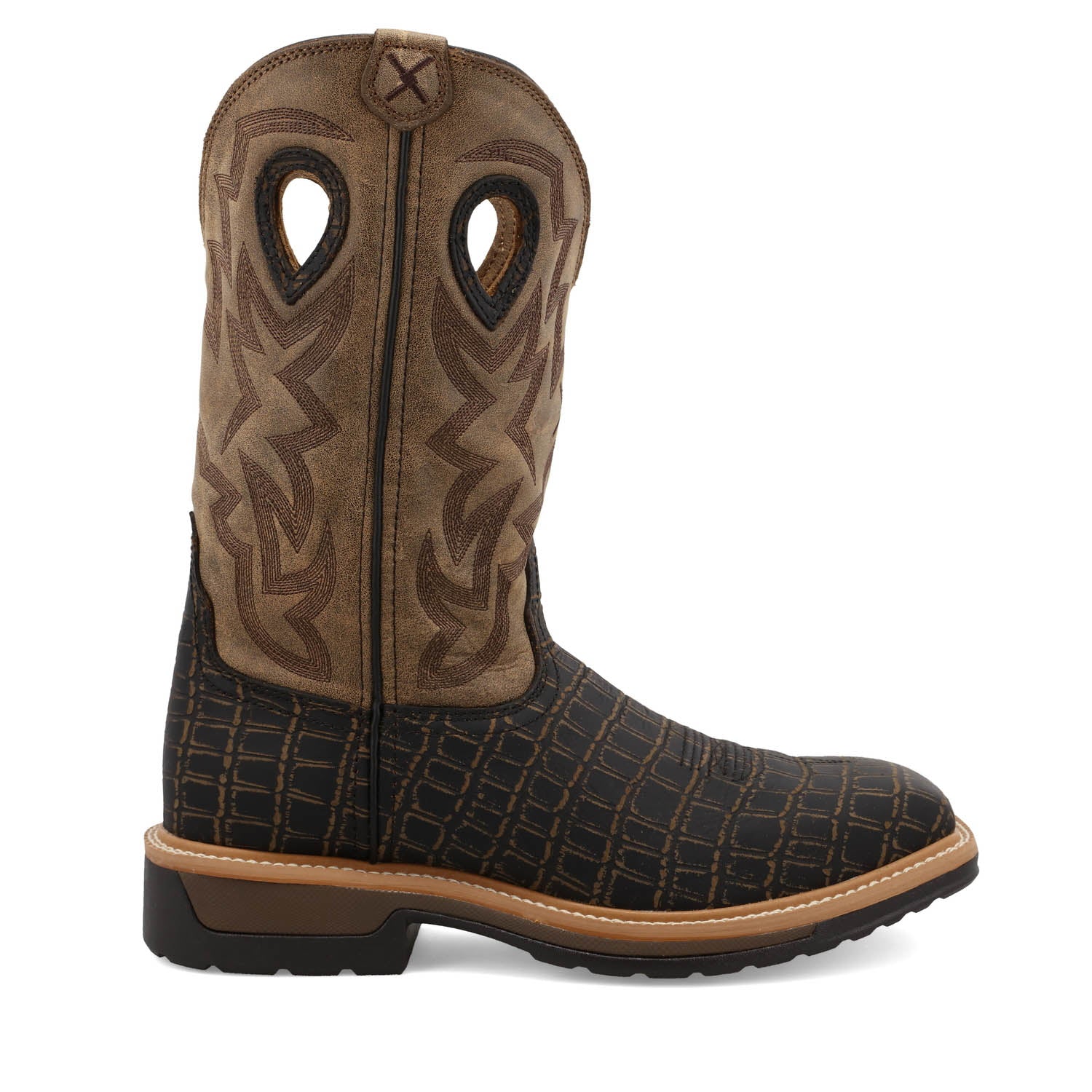 Always striving, never compromising. Twisted X is dedicated to making better boots and it shows. This Men's 12" Alloy Toe Lite Western Work Boot is handcrafted in traditional western boot profiles with signature full-grain leathers for a classic look. On the inside, they utilize air-mesh lining, taped seams, and a Twisted X molded footbed for additional comfort. These comfort features are paired with a double-stitched storm welt, full-length composite insole, a lightweight full-length compression-molded EVA midsole, and an oil/slip-resistant molded-rubber outsole to produce an industry leading work boot. Twisted X Western Work Boots provide all the comfort and durability that you need to outperform any demanding work environment. Work hard and stay protected with these work boots.