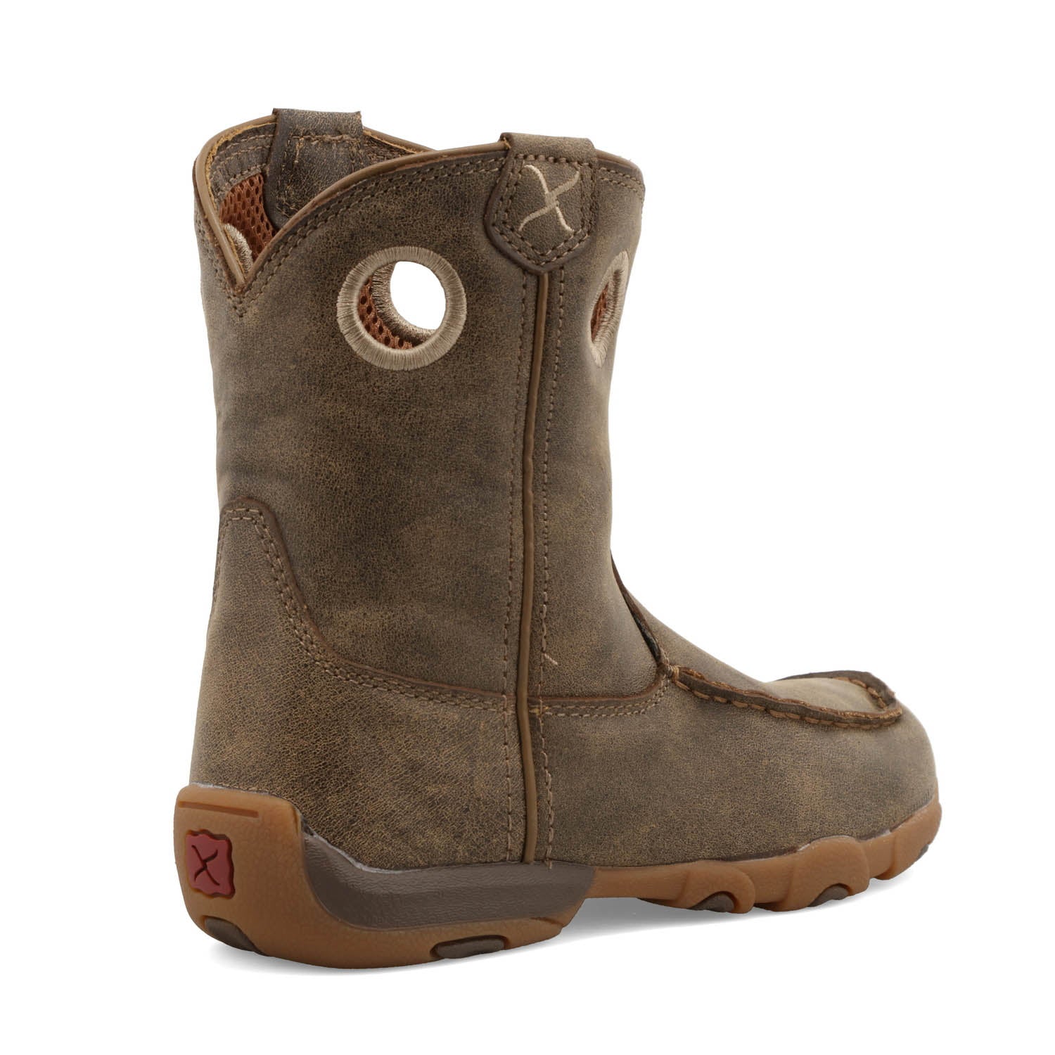 Always striving, never compromising. Twisted X is dedicated to making better boots and it shows. The Kid's Driving Moc Boot is a true Twisted X original! Handcrafted in full-grain leather, the driving moc boot makes an unforgettable statement about true comfort and style in casual footwear. Blending together a traditional pull-on boot profile, moc toe design and integrated comfort technology that provides timeless quality and style. The lightweight EVA footbed, three-quarter length composite insole, and the Twisted X driving moc outsole combine to produce one of the most comfortable casual shoes you can find. From a relaxing stroll to spending the entire day on your feet, our driving mocs will have you redefining comfort. Wear these cowboy boots with pride!