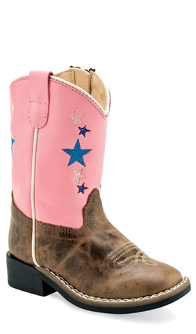 Old West Pearl Toddler Girls Faux Leather Zipper Cowboy Boots